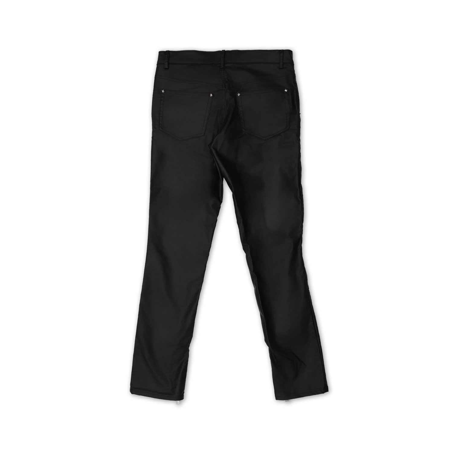 Cut and sewn in Los Angeles from stretch cotton twill finished with a matte black coating. Designed with paneled construction through the thigh and reinforced knees for shape and structure. Features zipper detailing by the front pockets and ankles for a sleek, utilitarian finish. Made to order. 10-20 day shipping.