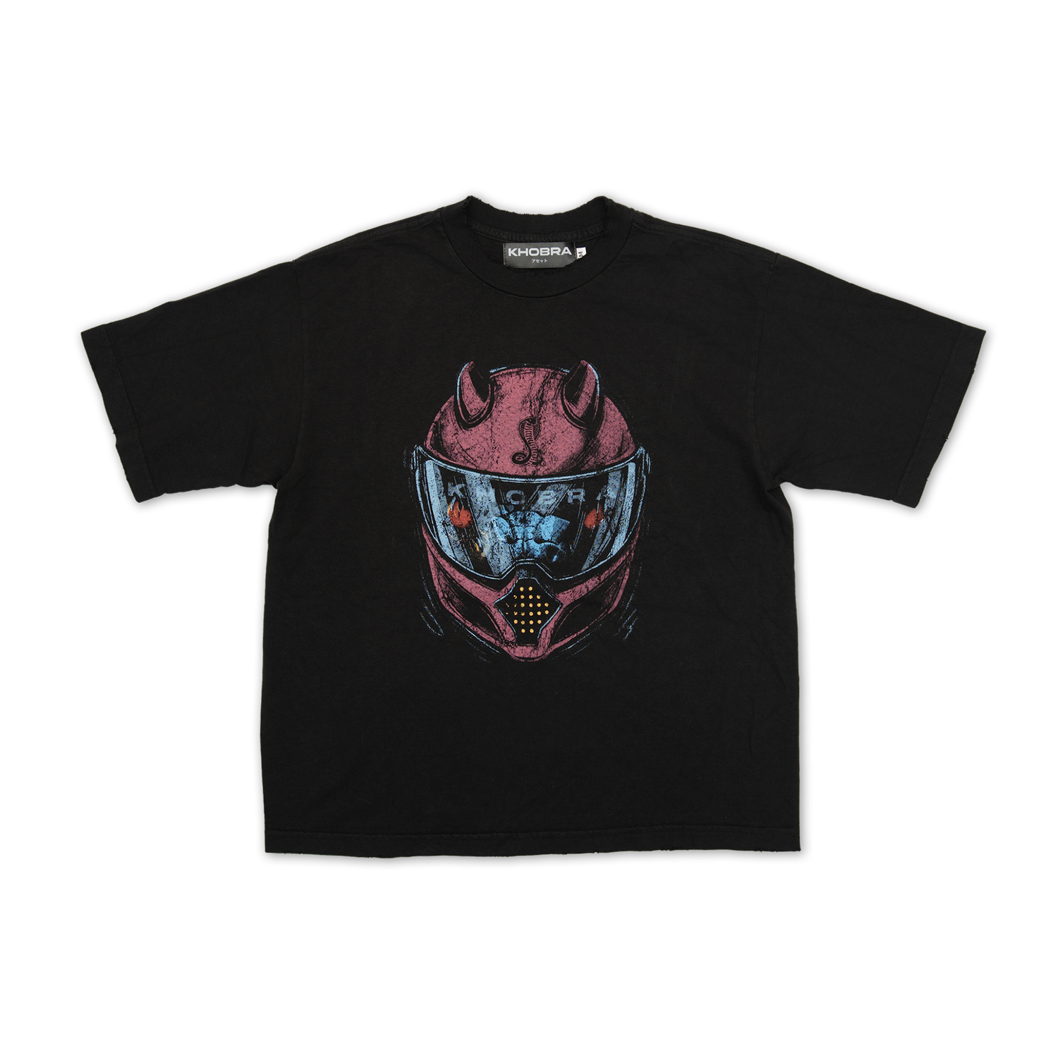 Cut and sewn in Los Angeles from 6.5oz soft cotton jersey, mineral washed for a subtly faded finish and broken-in feel. Light distressing along the neckline, sleeves, and bottom hem adds natural wear character. Features a bold helmet graphic screen print; standard fit with reinforced stitching. Shipping 3-5 days